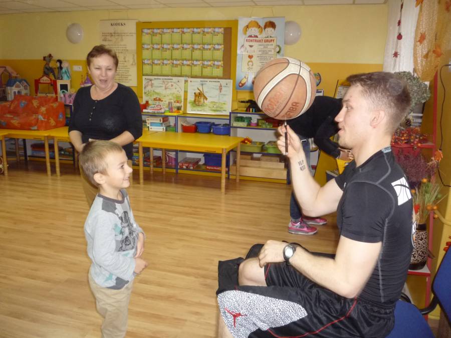 SPOTKANIE Z ABSOLWENTEM NASZEGO PRZEDSZKOLA KOSZYKARZEM KACPREM LACHOWICZEM